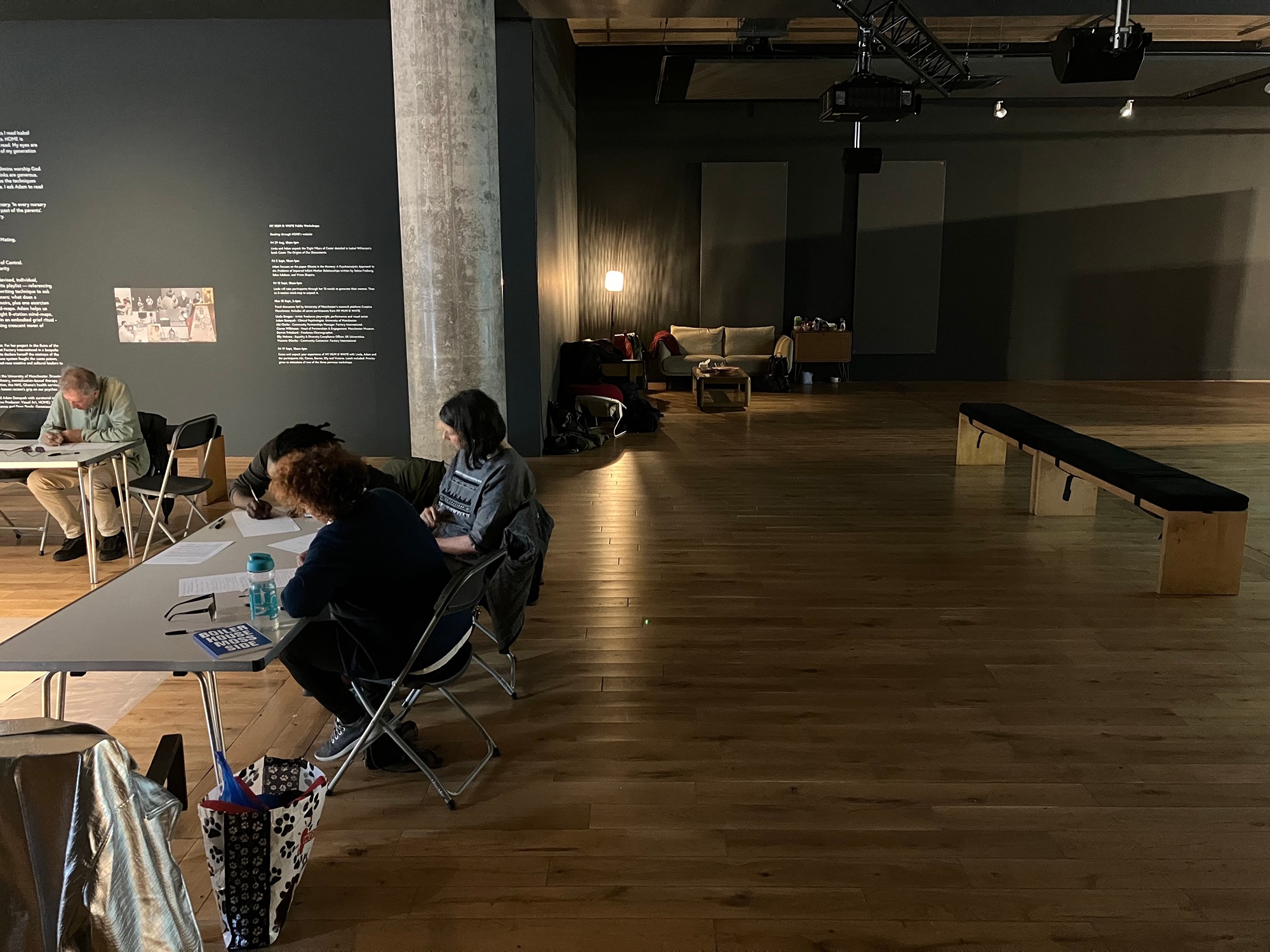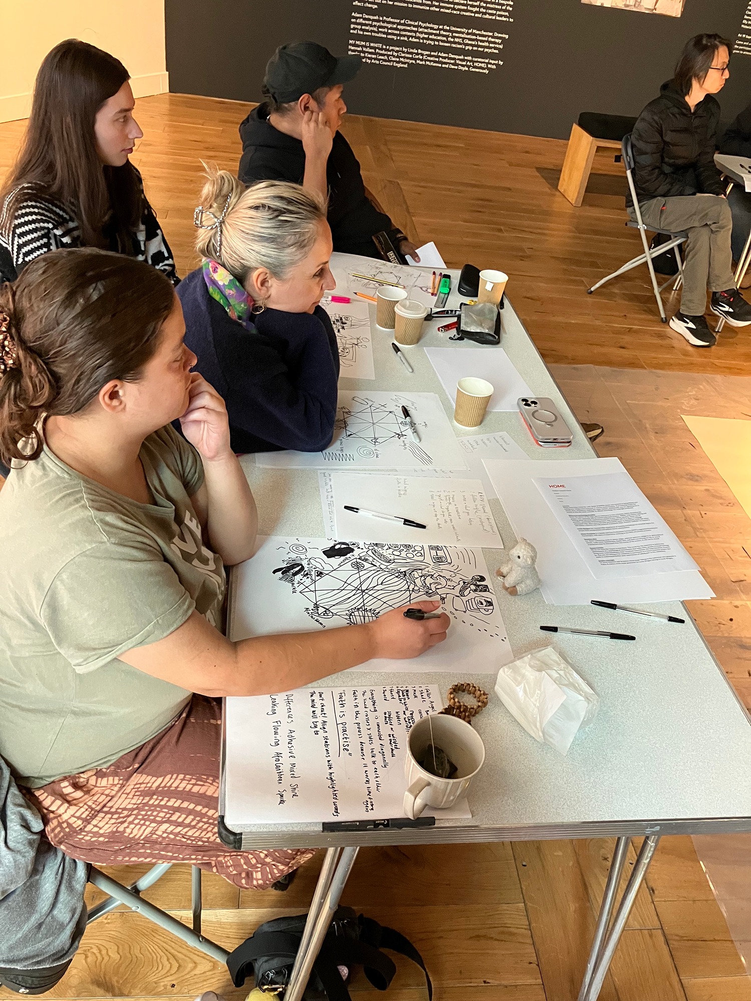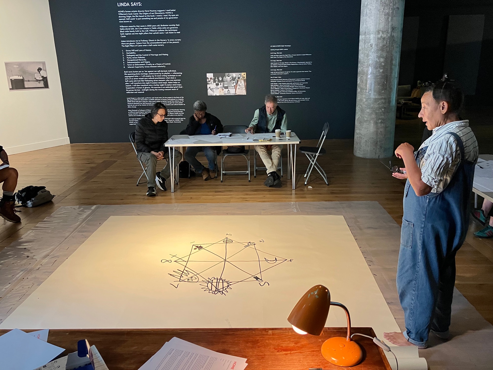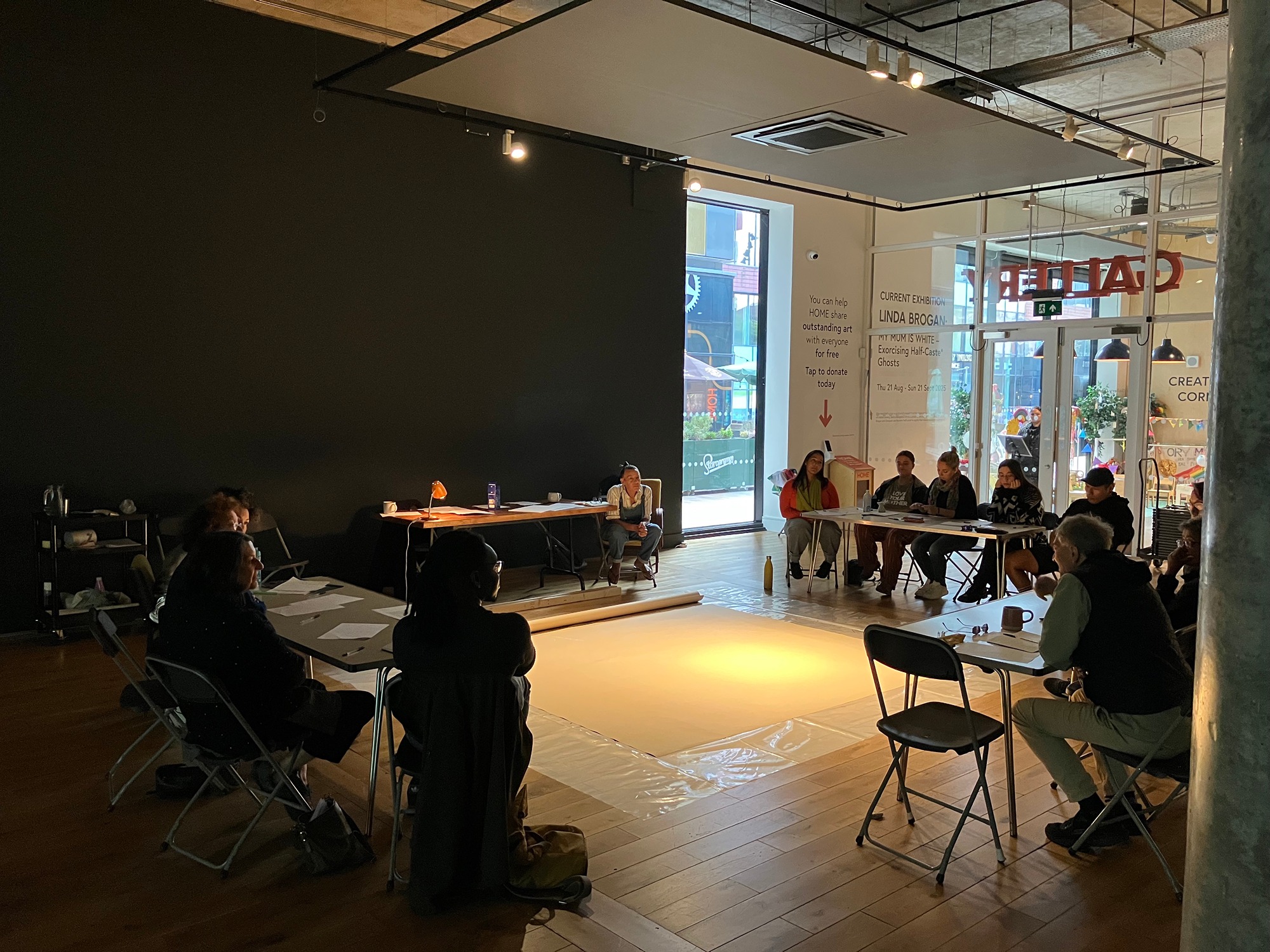 Today I found myself at HOME, taking part in the workshop My Mum Is White: 12 Words and 8 Stations, led by artist and playwright Linda Brogan together with psychology professor Adam Danquah. The project is part of the exhibition My Mum Is White: Exorcising ‘Half-Caste’ Ghosts, where the gallery space turns into something between a studio and a place of therapy, a space for exploring memory, identity, and personal histories.