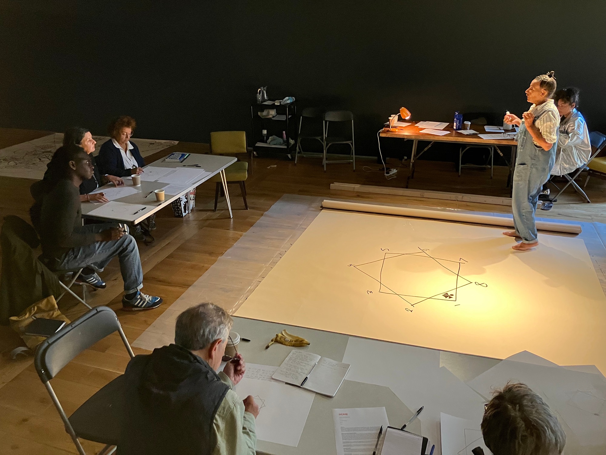 The 8' x 8' paper on the floor in the centre is perfect. I can demonstrate. The mind-maps in the hanging forest all begin with 8-stations.