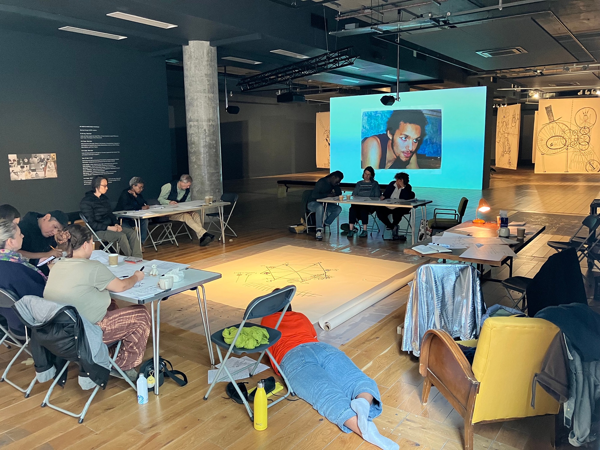I've taught 12-words umpteen times so I know it works. 8-stations has always proved trickier. So tricky I've never given it a true shot. The 8' x 8' paper on HOME gallery's floor makes it easy.